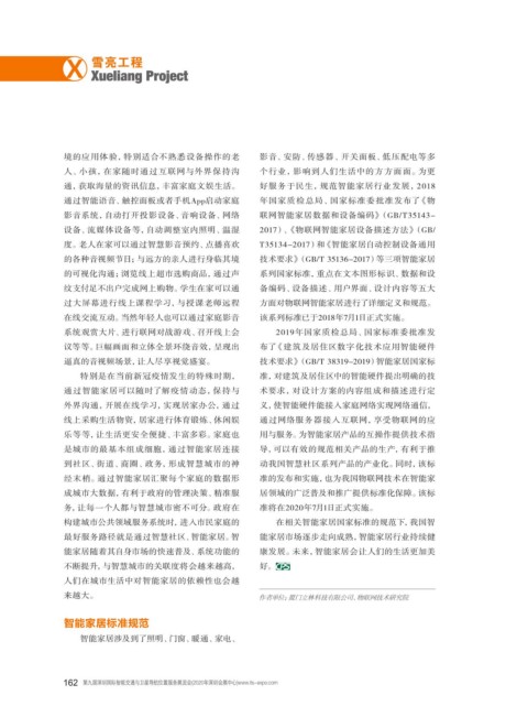 特别是在当前新冠疫情发生的特殊时期, 准,对建筑及居住区中的智能硬件提出明确的技