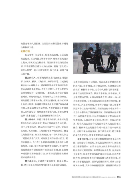数、携行装备及现场环境等因素可采取结合式战法、 钢叉的协同、盾牌与伸缩棍的协同、盾牌催泪喷射器
